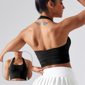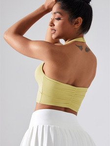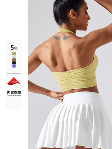 跨境欧美挂脖瑜伽文胸运动内衣女防震美背无痕背心健身衣跑步上衣