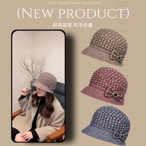 中老年人渔夫帽子女秋冬季妈妈盆帽子保暖加厚冬天帽子高级感礼帽