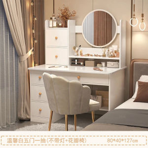 80cm五门一抽温馨白+高清镜(梳妆凳)