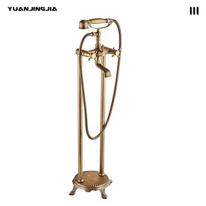 跨境仿古黄铜欧式浴缸龙头酒店卫生间双柱落地式浴缸淋浴花洒套装