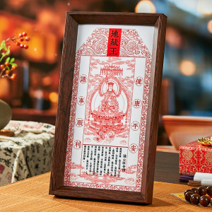 九华山地藏王原创佛门招财钱母相框五路财神招财进宝装饰偏财摆件