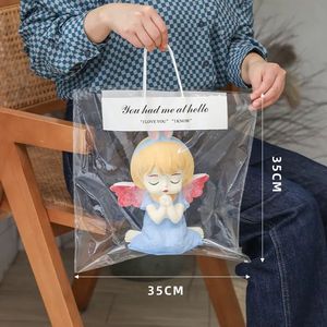 ins风透明手提袋石膏娃娃袋子盯制logo手作diy簇绒油画袋tufing