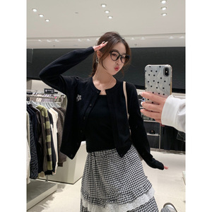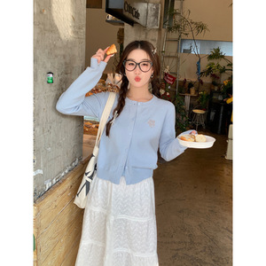 法式圆领花朵刺绣针织衫2025春季新款甜美显瘦修身上衣