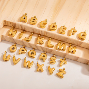 跨境不锈钢饰品配件26个英文字母卡通萌版18K金防水DIY项链吊坠