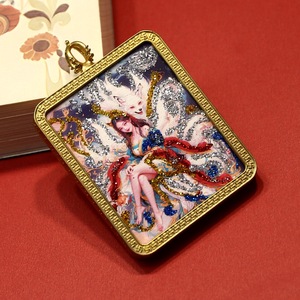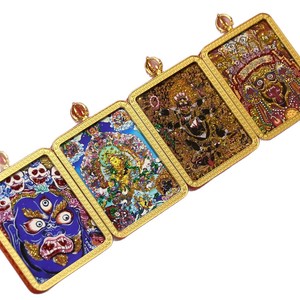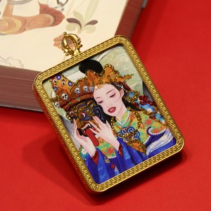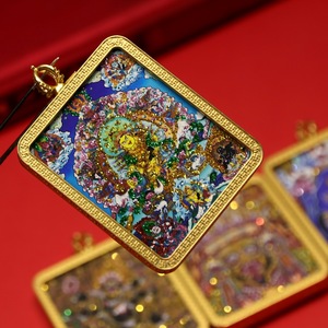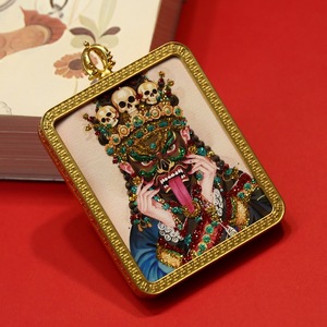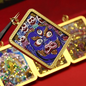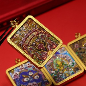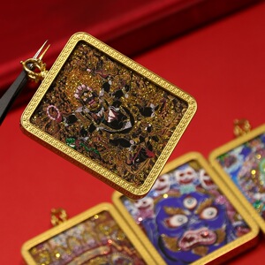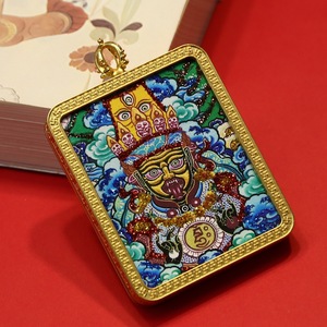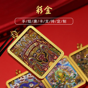 手绘彩金唐卡大黑天扎基拉姆生肖新款财神佛牌挂坠画芯批发
