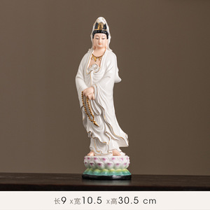 站立单观音-白瓷描金【带礼盒】