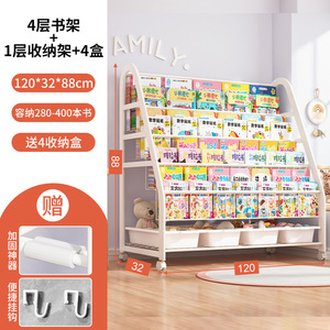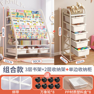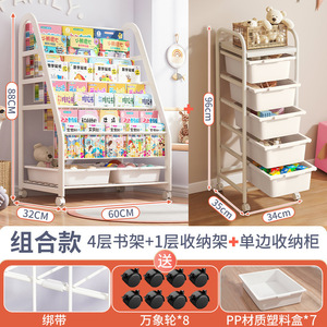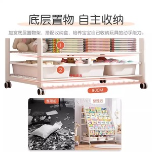 子供用本棚、家庭用絵本棚、読書エリア、移動式おもちゃ収納ラック、シンプルなベビー本棚、床置き型