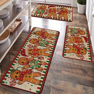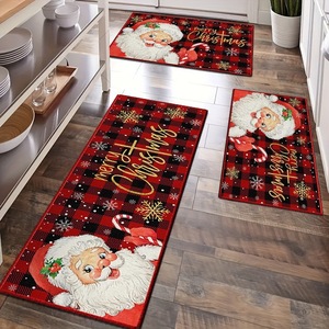 跨境TEMU代发圣诞节厨房垫两件套玄关入户地垫耐脏防蹭易打理现货