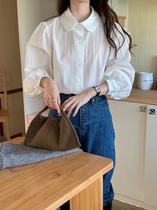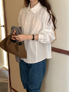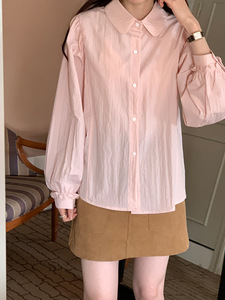 粉色长袖衬衫女秋季广州十三行2025新款韩版宽松显瘦百搭衬衣上衣