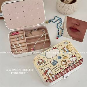 可爱凯蒂猫便携式收纳盒戒指饰品耳钉项链收纳整理高颜值大容量