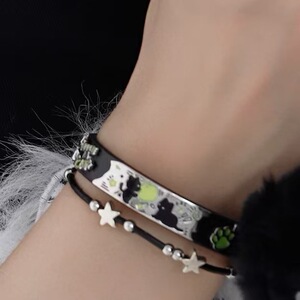 敲可爱!黑猫青苹果手链新款小众设计甜酷皮革手环手镯手环