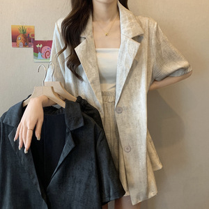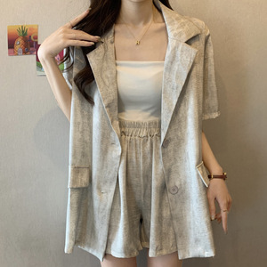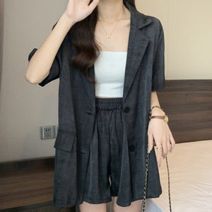 短袖西装套装女大码胖mm夏季时尚感减龄气质轻熟风西服短裤两件套