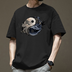 国潮美式t恤高街男士夏季ins潮牌短袖纯棉圆领衣服宽松潮流五分袖