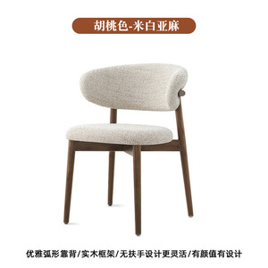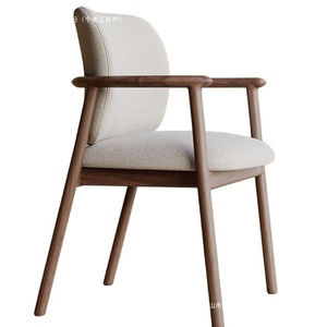 北欧实木餐椅新中式家用靠背椅子扶手棉麻皮革办公餐厅客椅主人椅