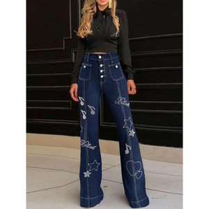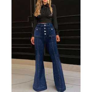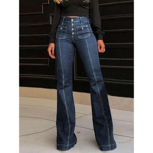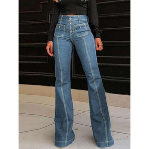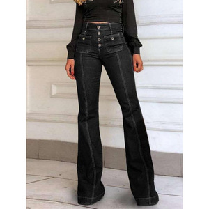 2025新款跨境代发女式素色纽扣口袋喇叭腿牛仔裤休闲基本款