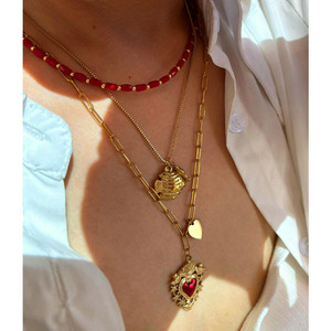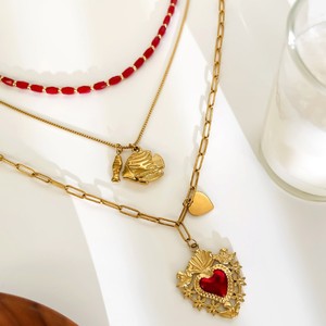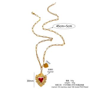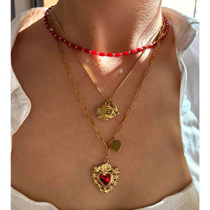 时尚网红爆款不锈钢爱心小鱼珐琅红色串珠日常个性叠戴项链批发女