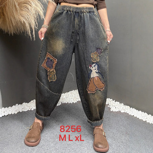 民族风牛仔裤女秋季新款刺绣贴布萝卜裤宽松紧腰大码显瘦灯笼裤