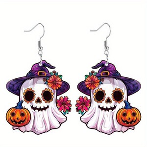 跨境新款彩色鬼欧美万圣节亡灵节五颜六色的幽灵南瓜亚克力耳环