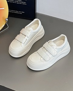 真皮女款贝壳头运动板鞋2025春秋季新款魔术贴厚底松糕饼干小白鞋