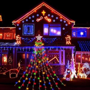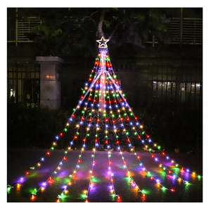 太阳能五角星瀑布灯氛围装饰灯庭院户外阳台防水挂树满天星星彩灯