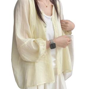 防晒衬衫外套女薄夏季天小开衫外搭宽松长袖棉衬衣亚麻上衣短款新