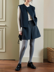 通勤灰色斜门襟圆领马甲2025春秋季新款休闲高腰短裤两件套