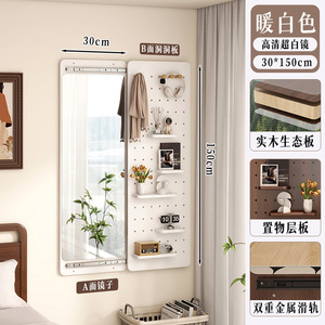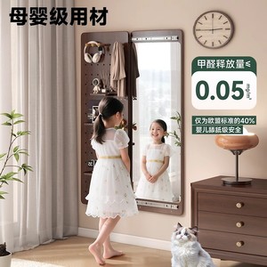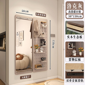 实木洞洞板穿衣镜玄关一体可关闭的全身镜推拉试中古风家用衣镜子