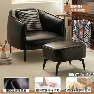 轻奢单人沙发椅家用简约小户型客厅卧室公寓酒店接待皮艺懒人沙发