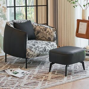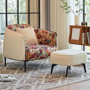 【单椅+脚蹬】米白色猫爪皮拼莫奈花园-送抱枕