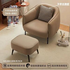 【单椅+脚蹬】加大款卡其色猫爪皮-送抱枕