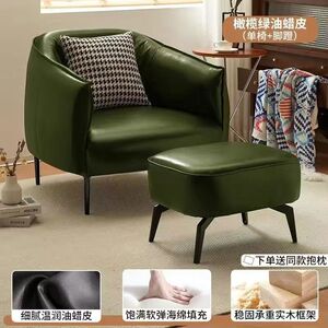 【单椅+脚蹬】加大款橄榄绿油蜡皮-送抱枕