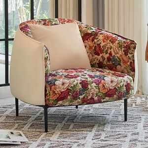 【单椅】加大款米白色猫爪皮拼莫奈花园-送抱枕