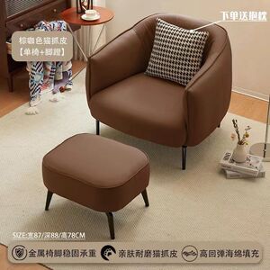 【单椅+脚蹬】加大款棕咖色猫爪皮-送抱枕