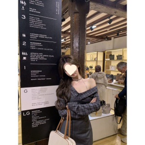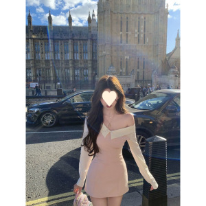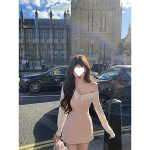 甜辣风格纹拼接假两件衬衫连衣裙秋季新款纯欲收腰显瘦包臀短裙女