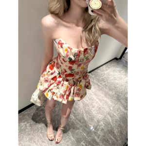 法式气质纯欲风碎花套装裙修身抹胸上衣茶歇名媛蓬蓬半身裙两件套