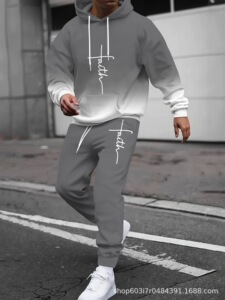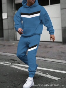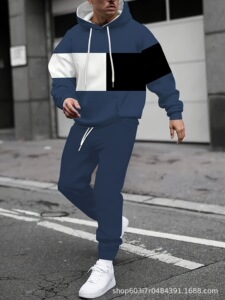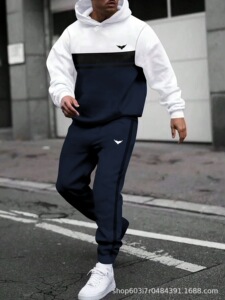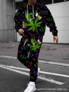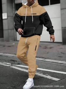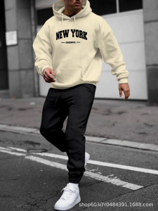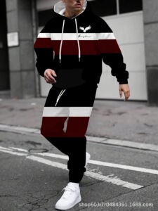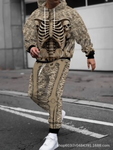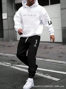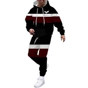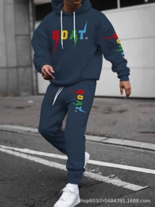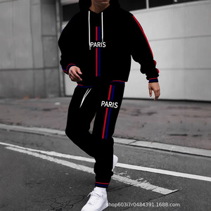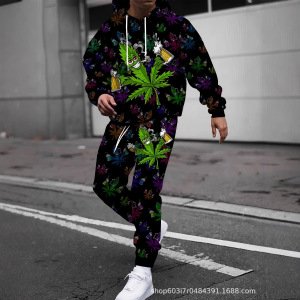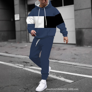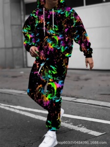 2025跨境外贸男士休闲时尚卫衣 长袖3D数码印花运动连帽 长裤套装