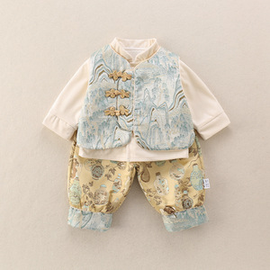 男童套装春秋新款宝宝新中式外套百天抓周岁礼服婴幼儿分体三件套