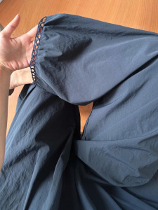 日系灯笼阔腿裤女夏薄款藏青色裤子大码胖mm显瘦小个子花苞九分裤