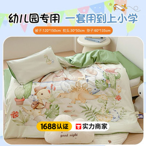 60s长绒棉A类幼儿园纯棉三件套午睡全棉婴儿床儿童被套入园六件套