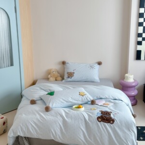 A类母婴级纯棉高端刺绣四件套全棉超软ins卡通风床单被套学生套件
