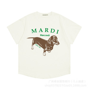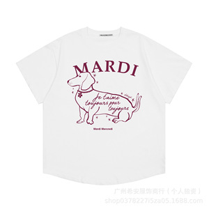 【高品质】韩国mardi雏菊短袖金高银同款腊肠狗T恤情侣百搭上衣女
