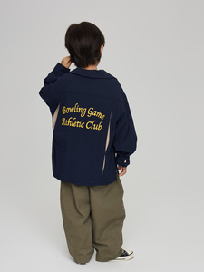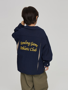 2025秋季新款儿童美式复古字母印花休闲衬衣男童宽松洋气翻领衬衫