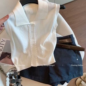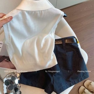 广州十三行高货爆款~时尚polo领无袖针织背心松弛感百搭显瘦上衣