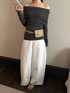 元派bluepops2025秋季新款舒适显瘦弯刀裤韩版阔腿休闲裤女A5608