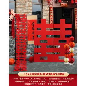 1.5米大喜字摆件+蜂窝球卷轴立柱套装