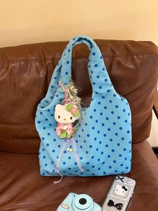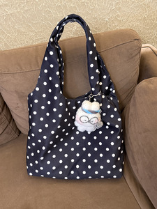 韩系波点黑色帆布包包女2025新款大容量单肩托特包小众通勤购物袋