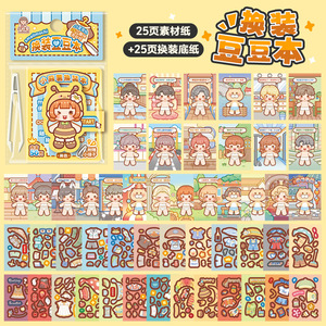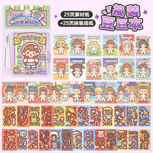 小麻薯换装贴纸迷你豆豆本可爱免裁剪手账贴纸创意场景换装贴纸本