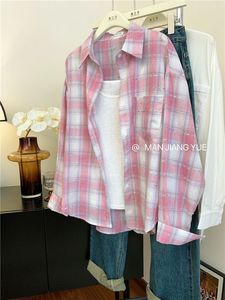 韩系织带格子衬衫女春秋新款高级感法式长袖上衣慵懒风防晒开衫衬
