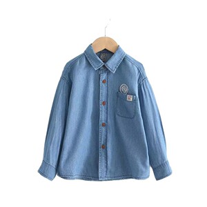 春秋季儿童长袖衬衫2025秋季新款贴标口袋牛仔衬衫长袖纯棉上衣