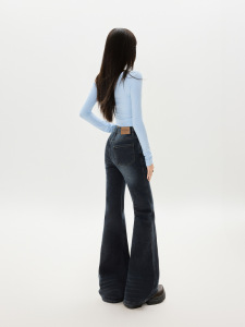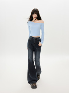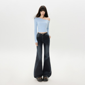 美式深蓝怀旧微喇牛仔裤女2025年秋季新款辣妹高腰显瘦弹力喇叭裤